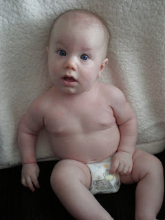 6 month clothes on a 3.5 month old baby - yes, he's huge! As you can tell from the pictures he doesn't miss any feedings. He's about 16 pounds now, even though he wiggles and shakes all the time when we lay him down to play.
